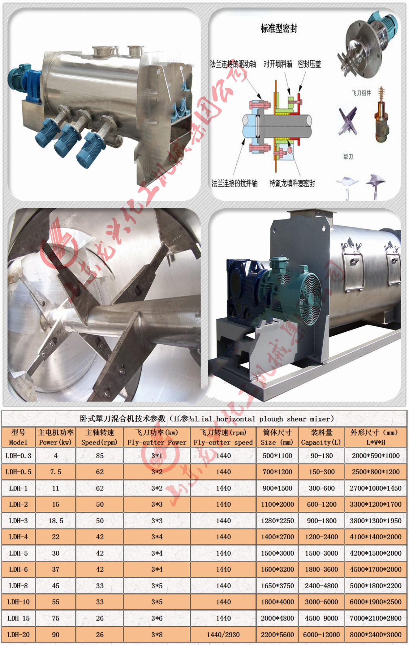 臥式犁刀式混合機廣泛應(yīng)用于化工、涂料、醫(yī)藥、食品、飼料、燃料、冶金、礦山等行業(yè)的固-固(即粉體內(nèi)添加液體)混合,以及濕造粒、干燥、濃縮等復(fù)合工藝。犁刀混合機是一種新型、高效的粉體混合機,主要針對纖維類物料含量大、混合過程中噴霧量較大(噴霧量33%以內(nèi))的應(yīng)用場合設(shè)計。該機混合時間短,對粒度、比重差異較大的物料混合有較好的適應(yīng)性,特別適合噴霧混合和造濕粒(0.3-3mm),可以根據(jù)生產(chǎn)需要增加噴霧裝置(噴霧量33%以下)、保溫干燥夾套。該產(chǎn)品適用與粉體與粉體、粉體與液體、粉體與顆粒的混合,該機具有高速飛刀分散作用,物料在犁頭和飛刀的雙重作用下能較短時間內(nèi)達到均勻混合,特別針對粉體與膏狀材料、粉體與纖維材料的混合攪拌,是一款高效率、高均勻度、高粉碎、低能耗、低污染的新型混合設(shè)備,特別適應(yīng)與自動配料系統(tǒng)、自動包裝系統(tǒng)的配合生產(chǎn)使用。