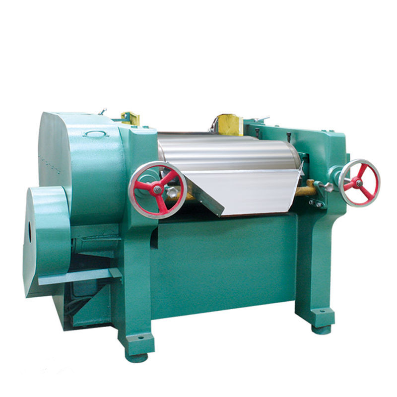 工作原理:是通過水平方向排列的三個輥筒,以不等速運轉(zhuǎn)移及表面相互擠壓造成的摩擦,使得相鄰的輥產(chǎn)生強烈剪切力,迫使物料被充分分散、研磨。