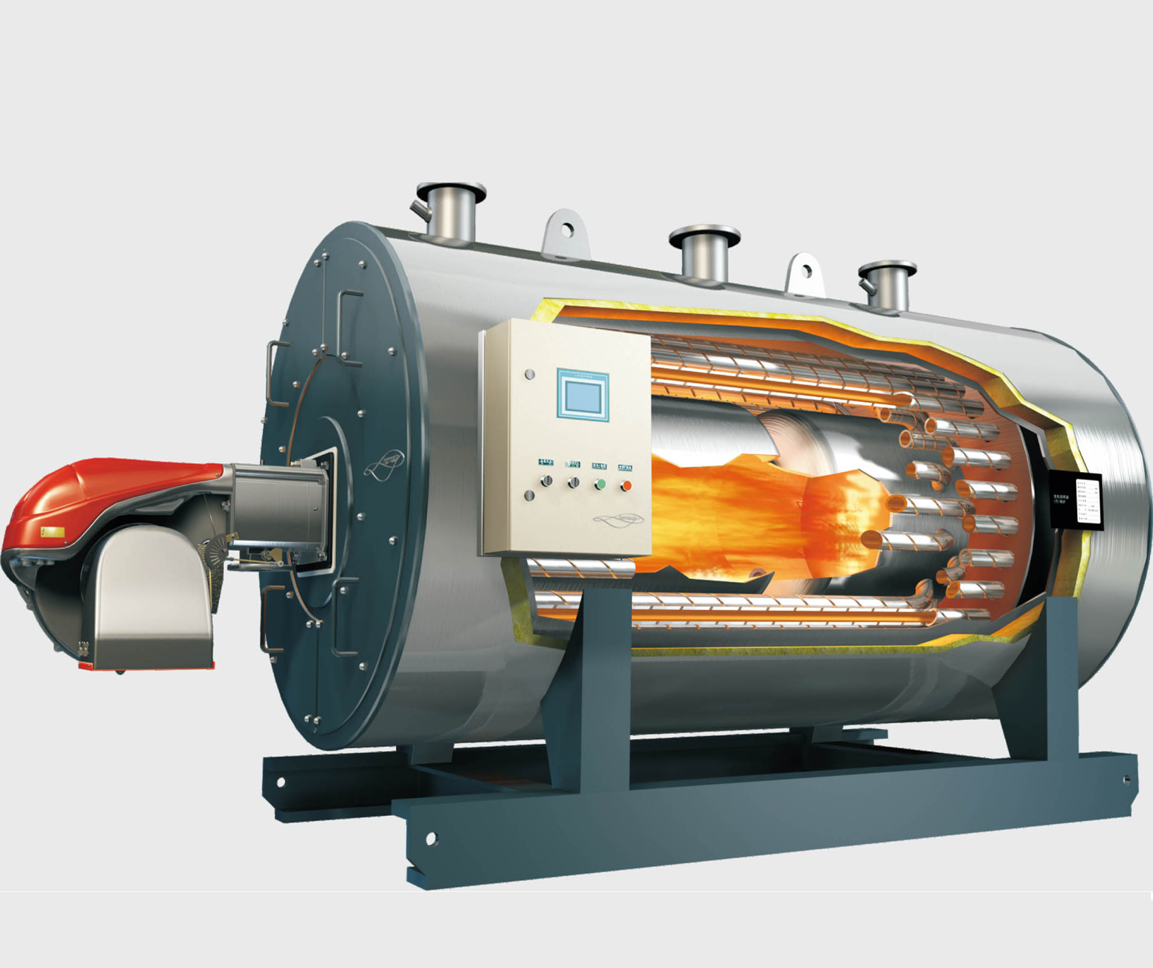 臥式燃油(氣)導(dǎo)熱油鍋爐具有低壓(≤0.4MPa)穩(wěn)定運(yùn)行,電腦自動(dòng)控制,熱效率可達(dá)90%以上等特點(diǎn),廣泛地應(yīng)用于石油化工、油脂材料、建材工業(yè)、紡織印染、食品、塑料、橡膠、制藥等行業(yè),是一種新型的理想的供熱設(shè)備。