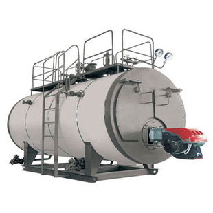 燃氣蒸汽鍋爐是我廠根據國內、外先進技術和經驗設計而成的鍋殼式三回程濕背燃油(氣)鍋爐。鍋爐運行自動化,燃料經燃燒器霧化后,形成的火炬充滿在全波形爐膽內,并通過爐膽壁傳遞輻射熱,此為一回程。燃燒產生的高溫煙氣在回燃室內匯聚,轉向進入二回程,即螺紋煙管管束區,經對流換熱后,煙氣溫度逐漸降低后至前煙箱,并在此轉向進入三回程,即光管管束區,隨后經后煙箱流入煙囪,最后排入大氣。